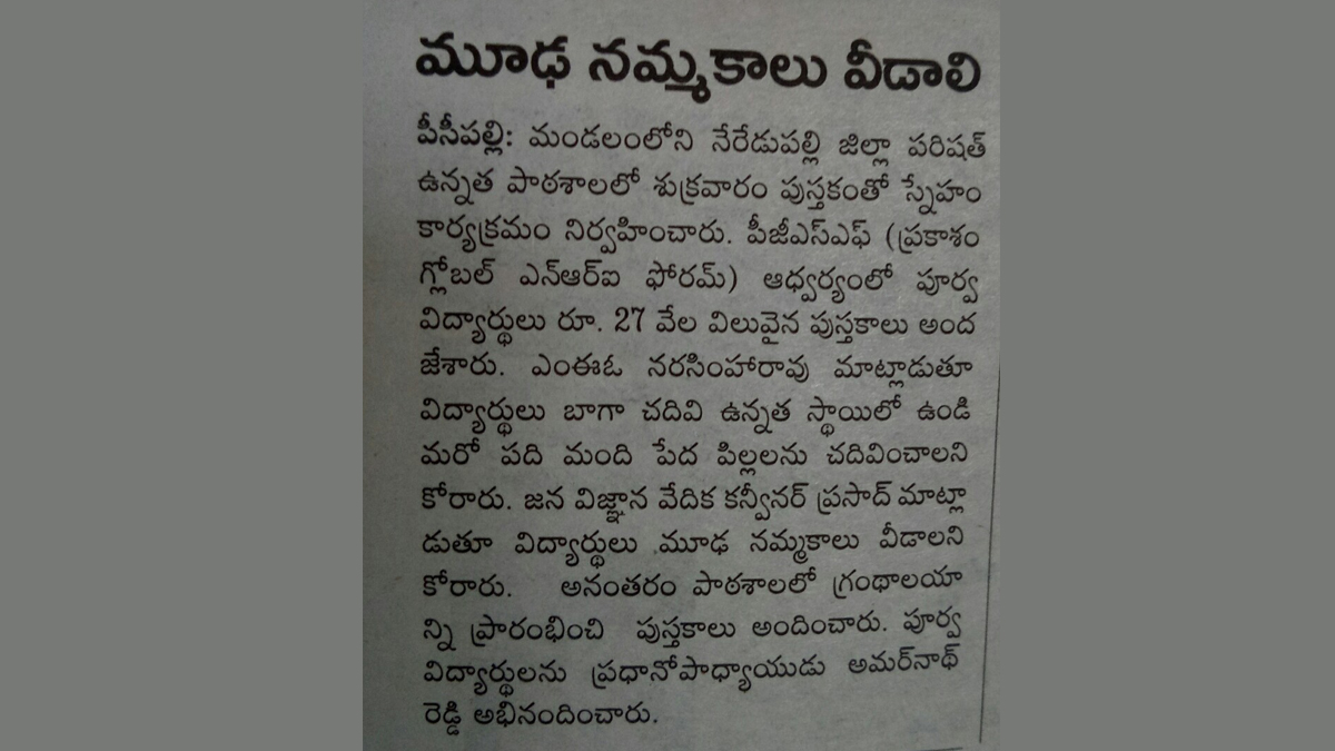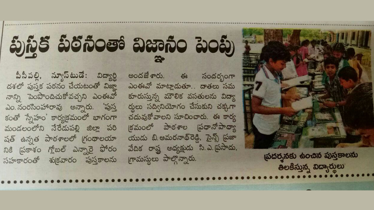 Friendship with Books @ Z.P.High School ., Neredu palli